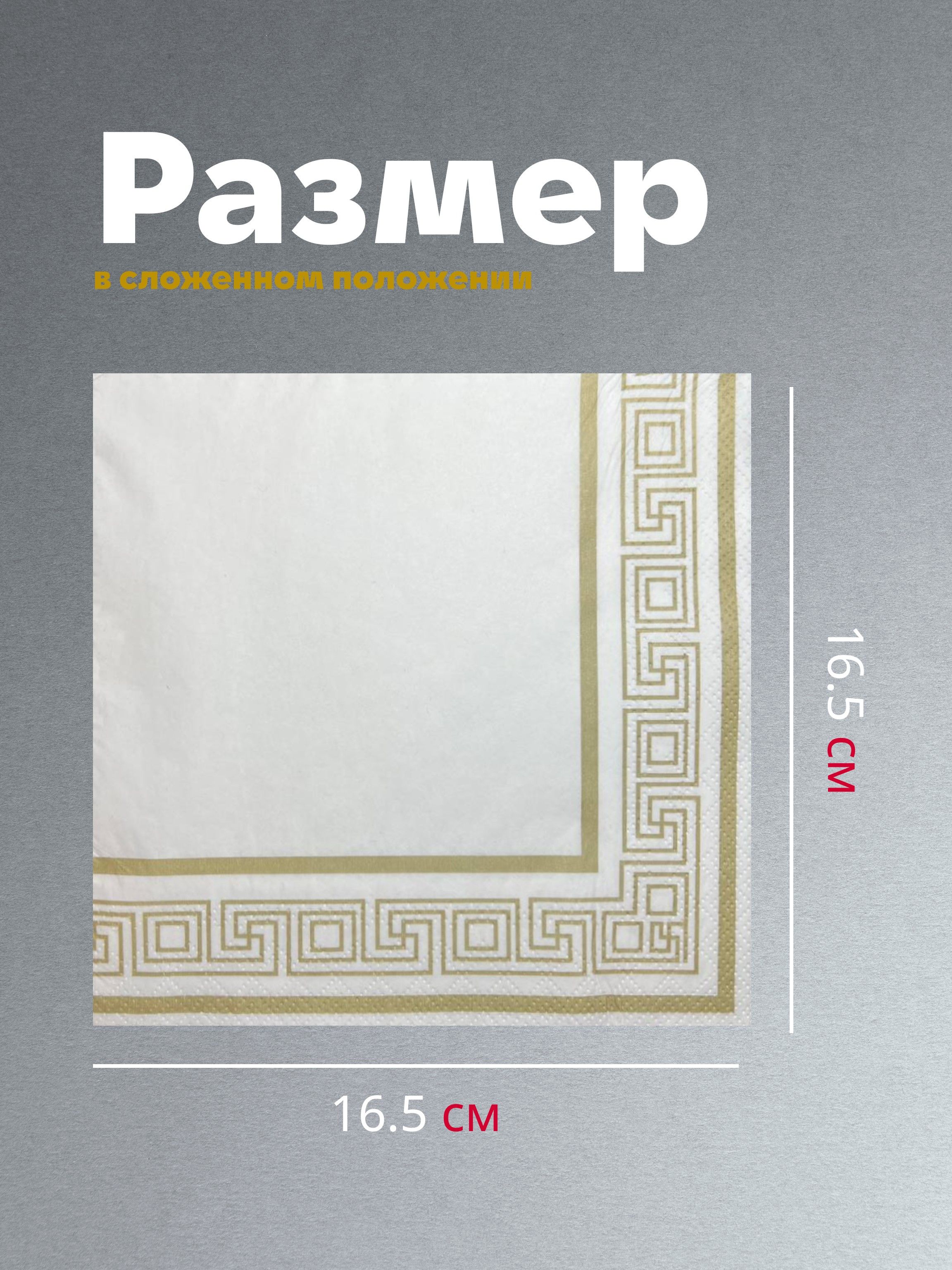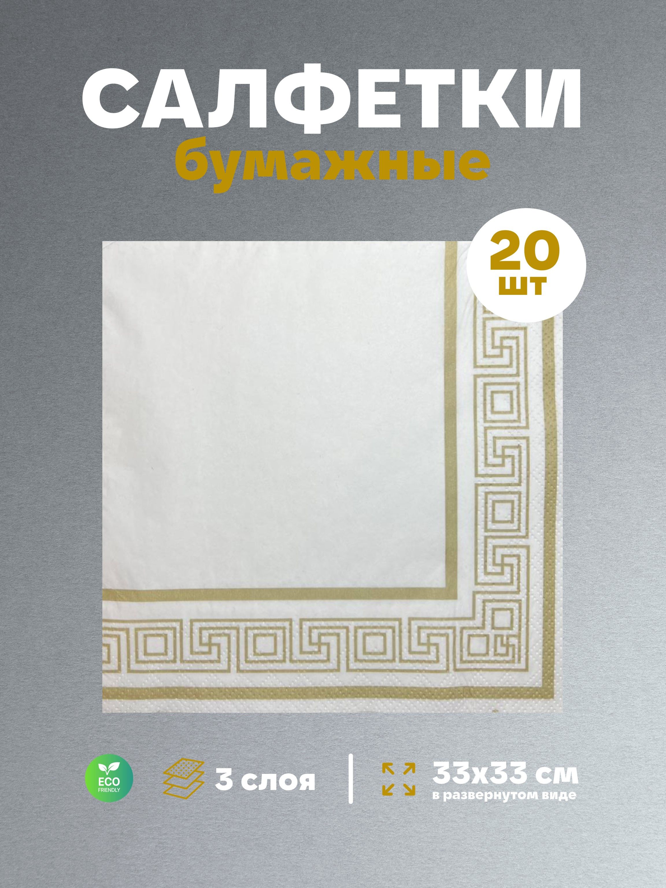 Салфетки бумажные праздничные трёхслойные для сервировки и декупажа Греческая рамка золото