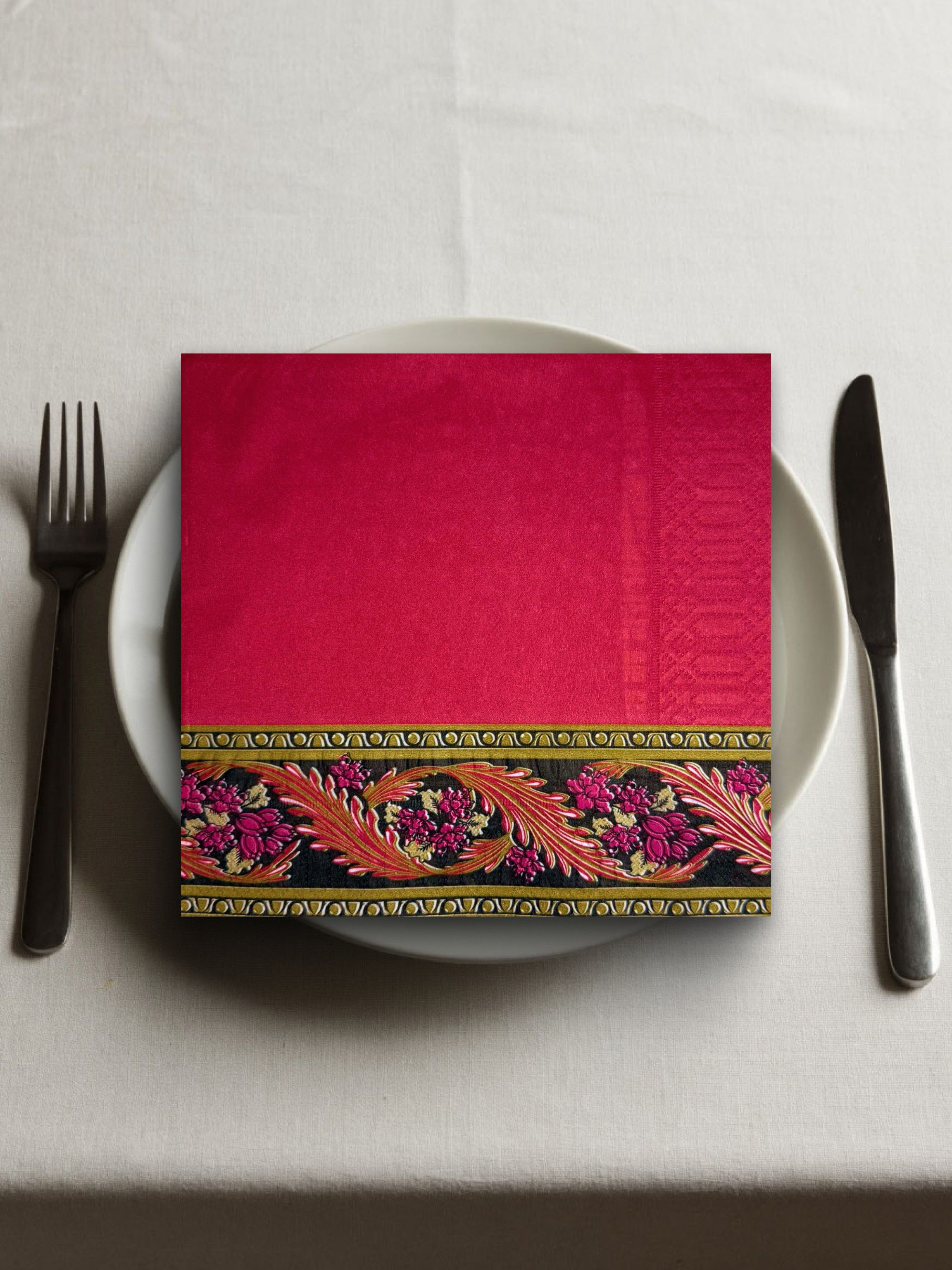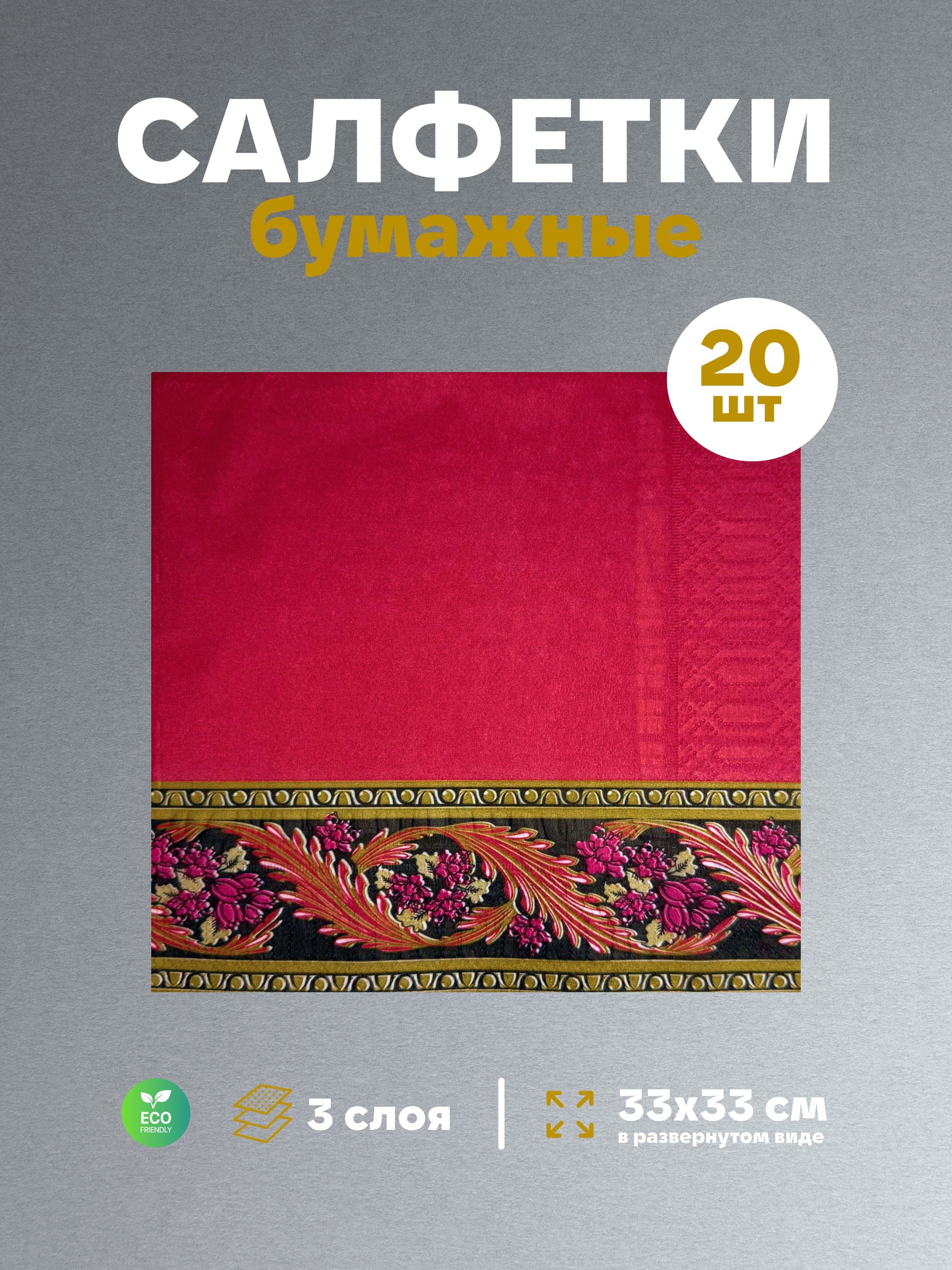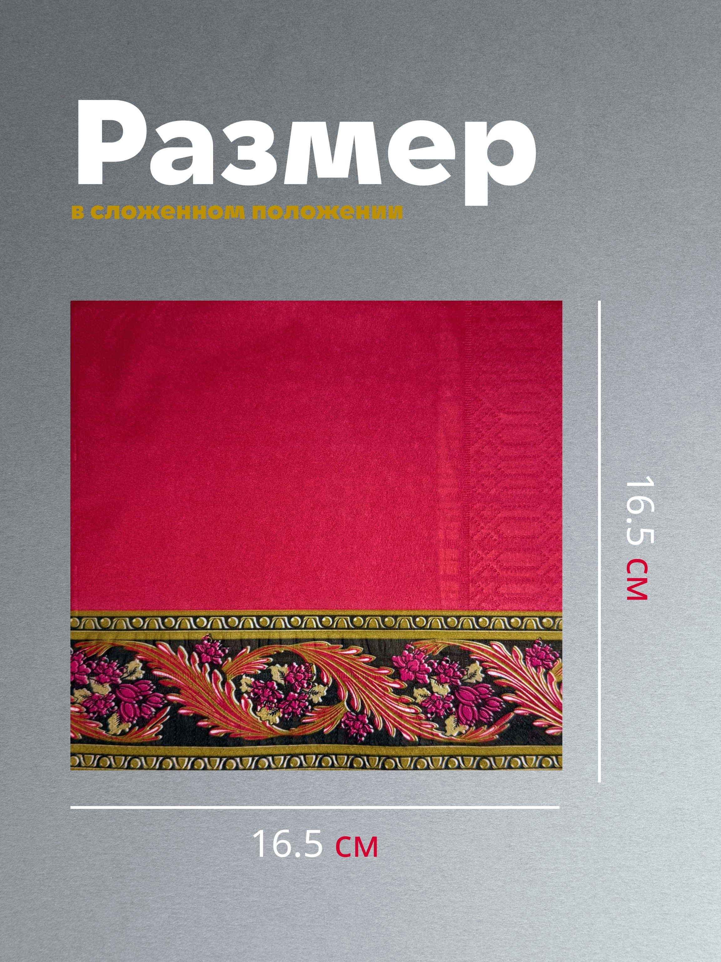 Салфетки бумажные праздничные трёхслойные для сервировки и декупажа Хохлома красная