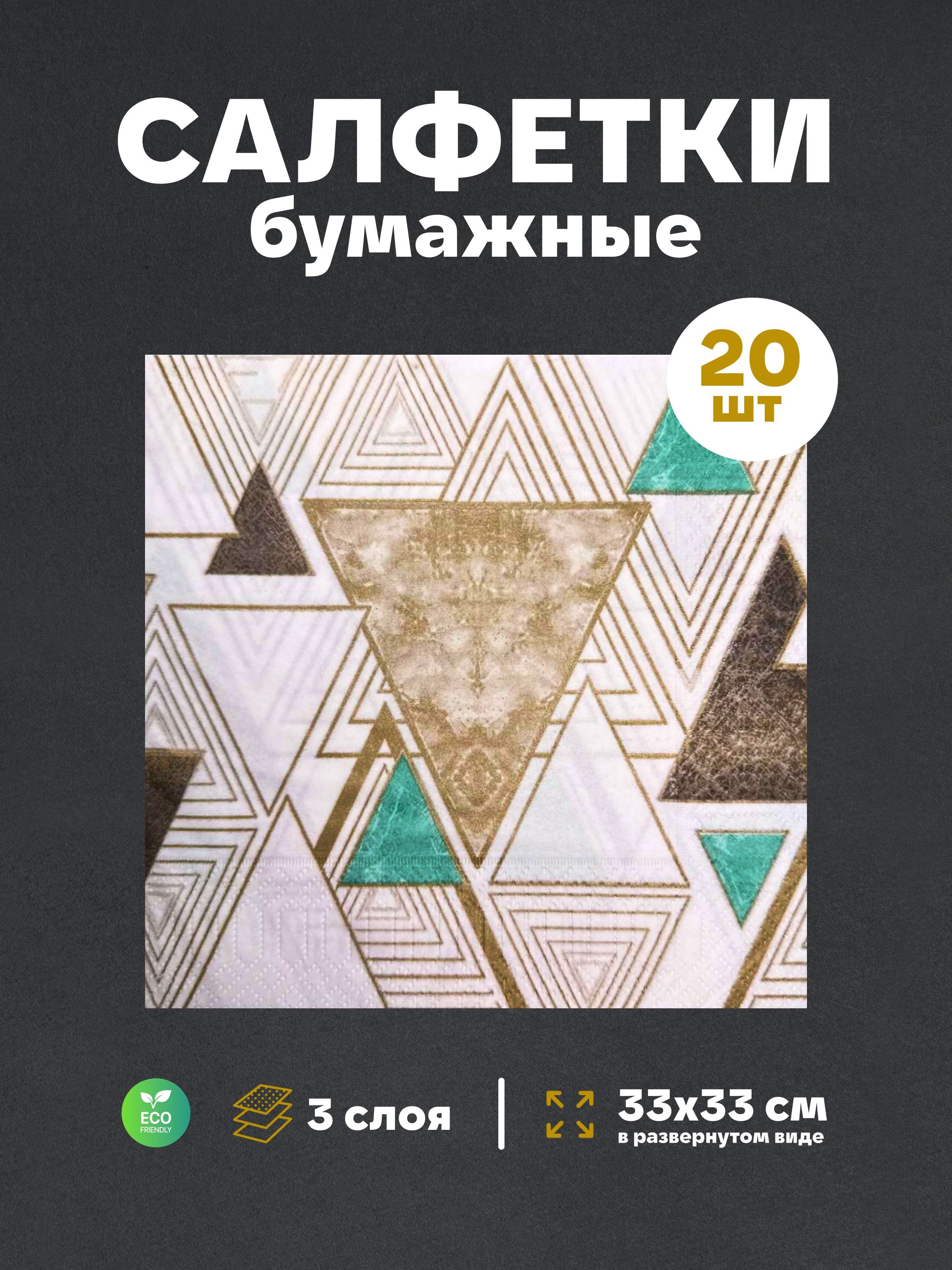 Салфетки бумажные праздничные трёхслойные для сервировки и декупажа Малахит