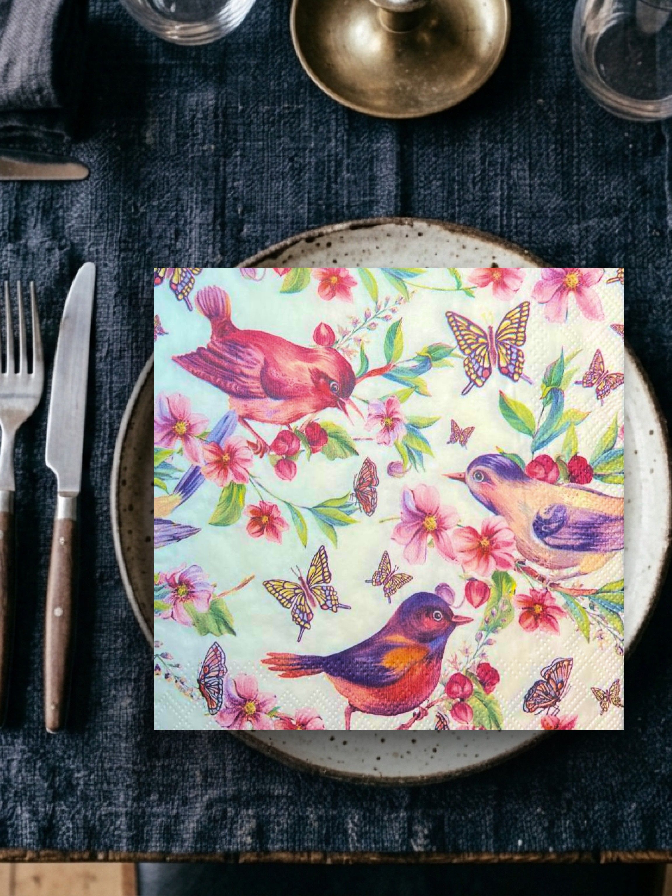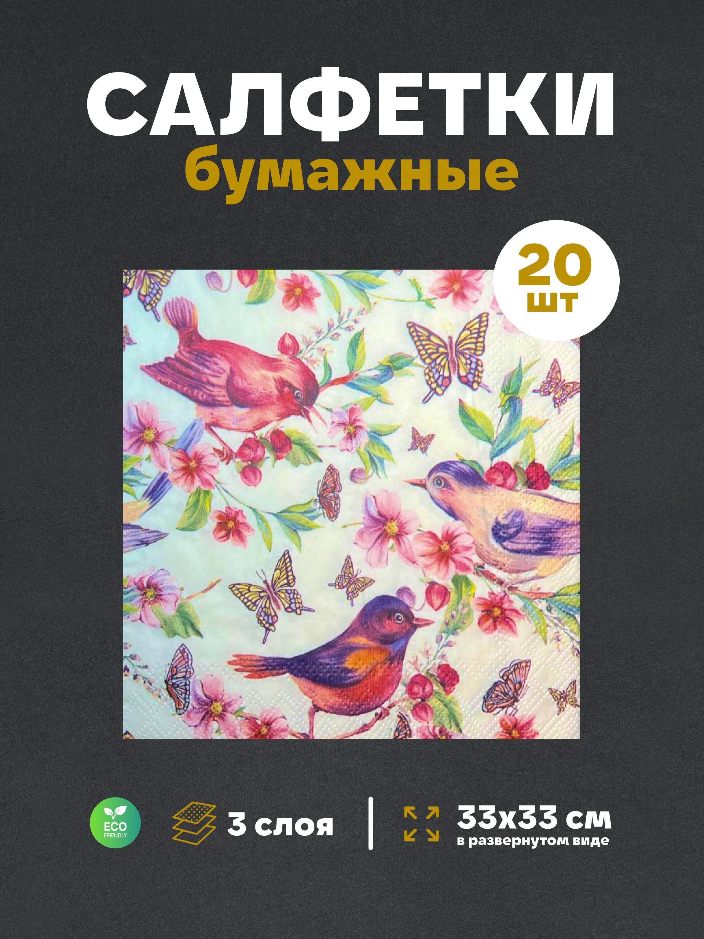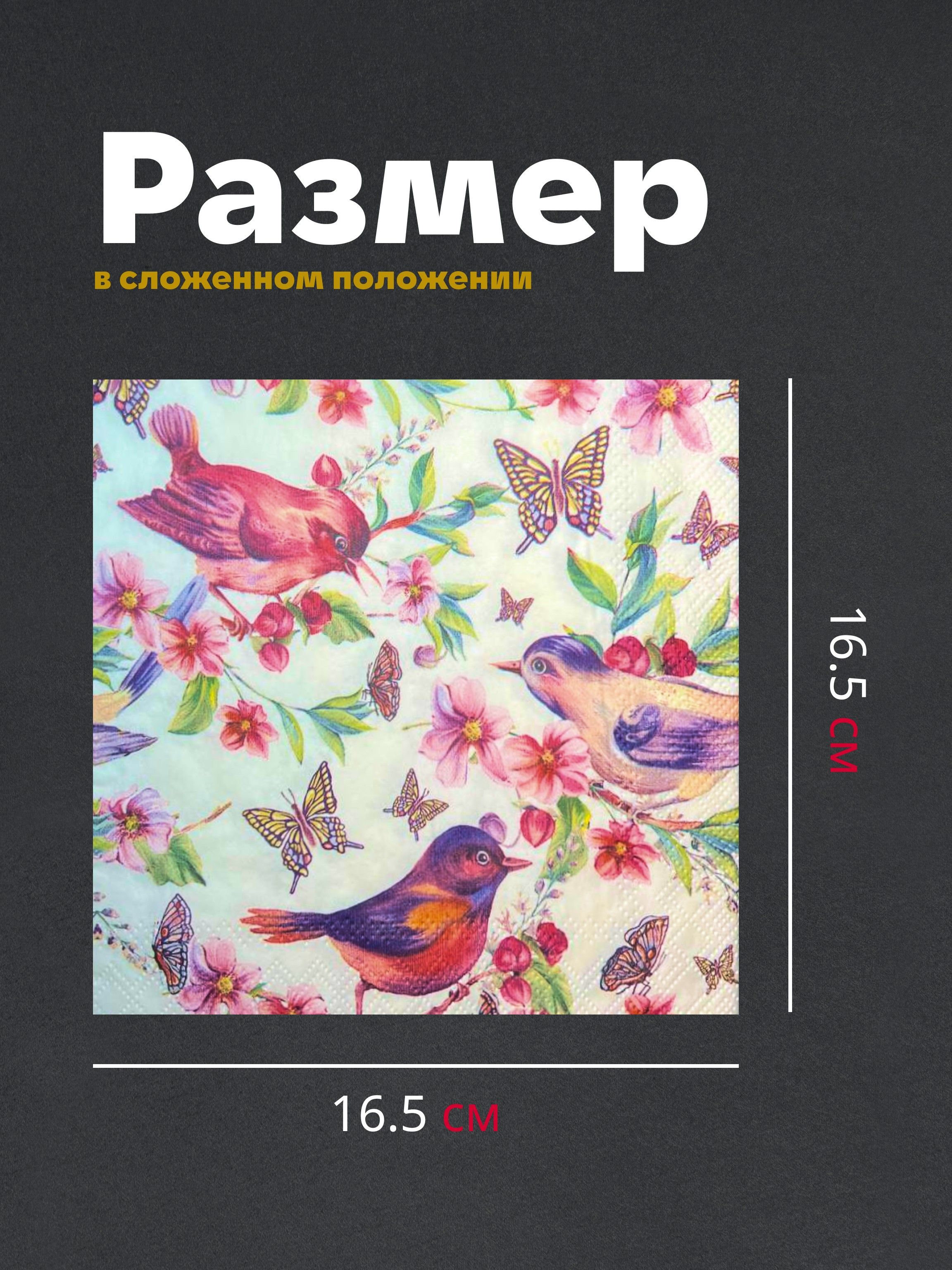 Салфетки бумажные праздничные трёхслойные для сервировки и декупажа Райские птички