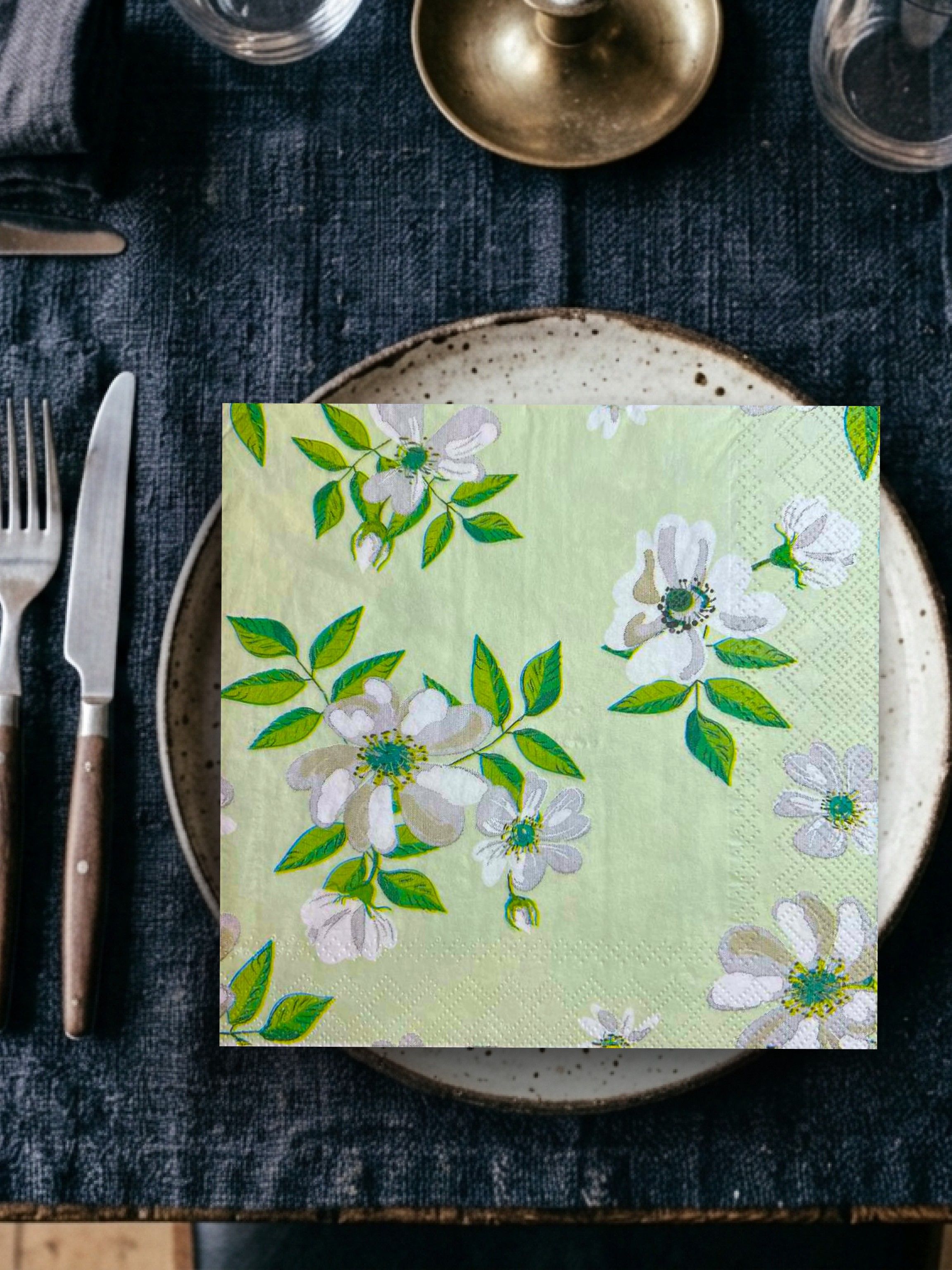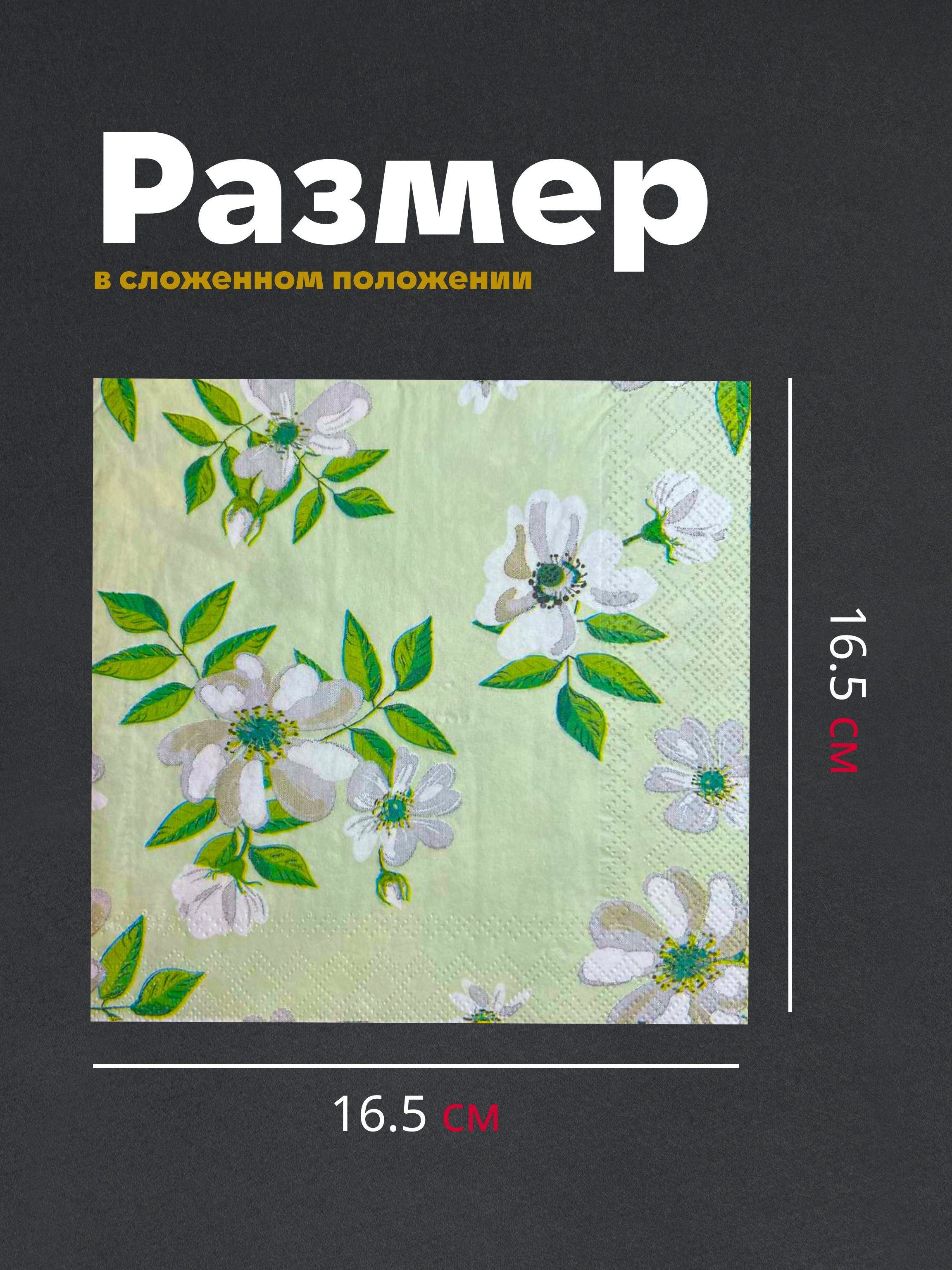 Салфетки бумажные праздничные трёхслойные для сервировки и декупажа Жасмин на зелёном